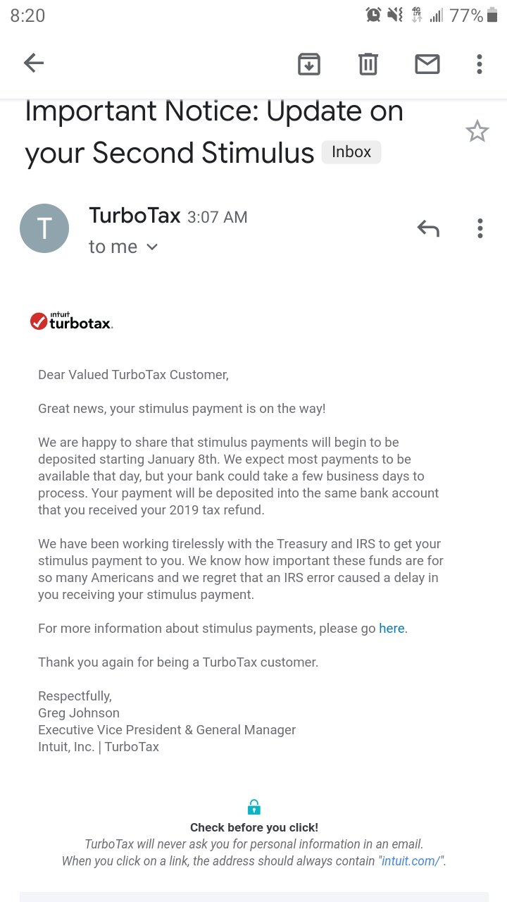 Intuit Turbotax On Twitter 3 Customers Receiving A Stimulus Payment Will Receive An Email From Turbotax Letting Them Know Their Stimulus Payment Is On The Way Twitter